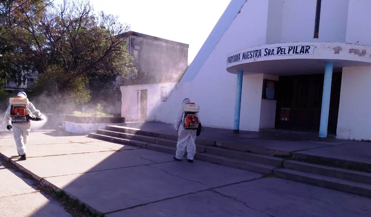 Las tareas se realizaron en espacios públicos, utilizados a diario por los vecinos y en algunos casos se llevó a cabo de manera intradomiciliaria. Las pulverizaciones continuaron en el horario de la tarde en los barrios Colón y Rivadavia.