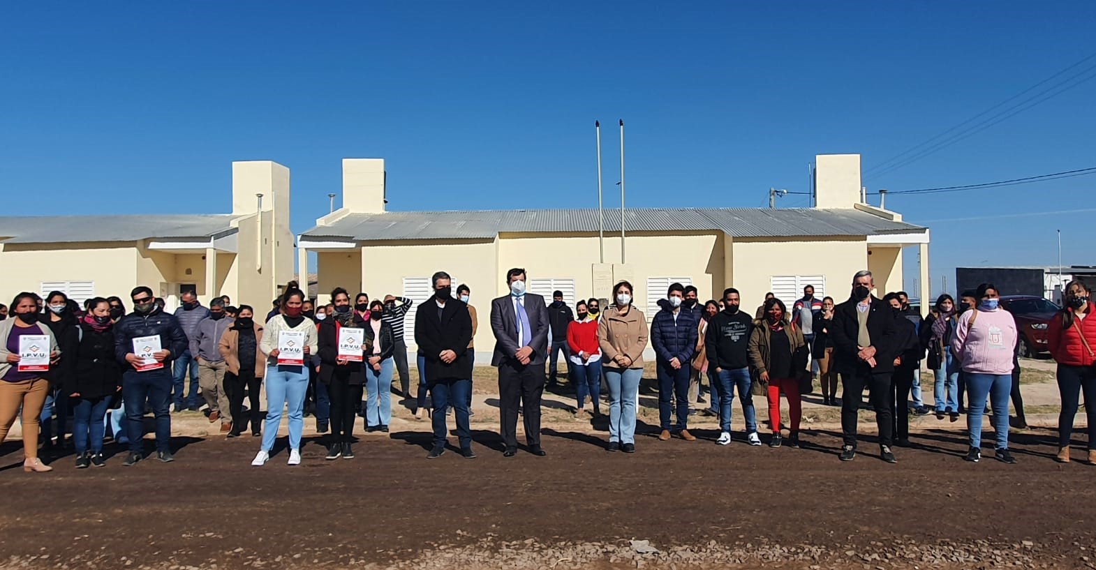 Participaron el titular del Instituto Provincial de Vivienda y Urbanismo, CPN Augusto Du Bois Goitia, la secretaria Técnica de Relaciones Publicas e Institucionales, Sara Ayuch, secretario Técnico de Adjudicaciones, Dr. Benjamín Guerrero, el intendente de la ciudad de Bandera, Dr. Guillermo Novara y autoridades comunales.