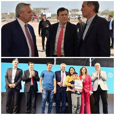 El presidente Alberto Fernández y el gobernador Gerardo Zamora realizaron este miércoles la entrega formal de 807 viviendas: 490 en el barrio Los Flores y 87 en Villa del Carmen de la ciudad Capital; 160 en el Ampliación Mama Antula de La Banda; 40 en el B° Néstor Kirchner de la ciudad de Pinto y 30 en el B° Portal del Norte de Villa Ojo de Agua.