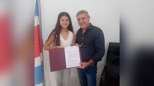 En un pequeño acto el jefe comunal Ramón Aguirre, le entregó la resolución que la declara “Personalidad Destacada” por su meritoria trayectoria que la llevó, a su corta edad, a ser seleccionada para integrar el plantel nacional de hockey femenino, Las Leoncitas Sub 18.