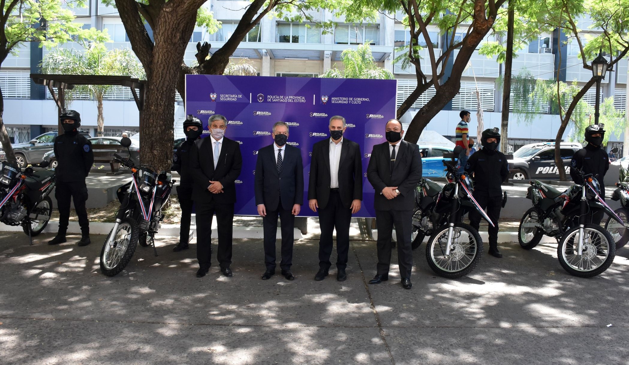 Como parte de las inversiones realizadas durante la gestión del gobernador Gerardo Zamora en materia de seguridad y prevención, este miércoles fueron entregadas veinte unidades motorizadas a la Policía de la Provincia.