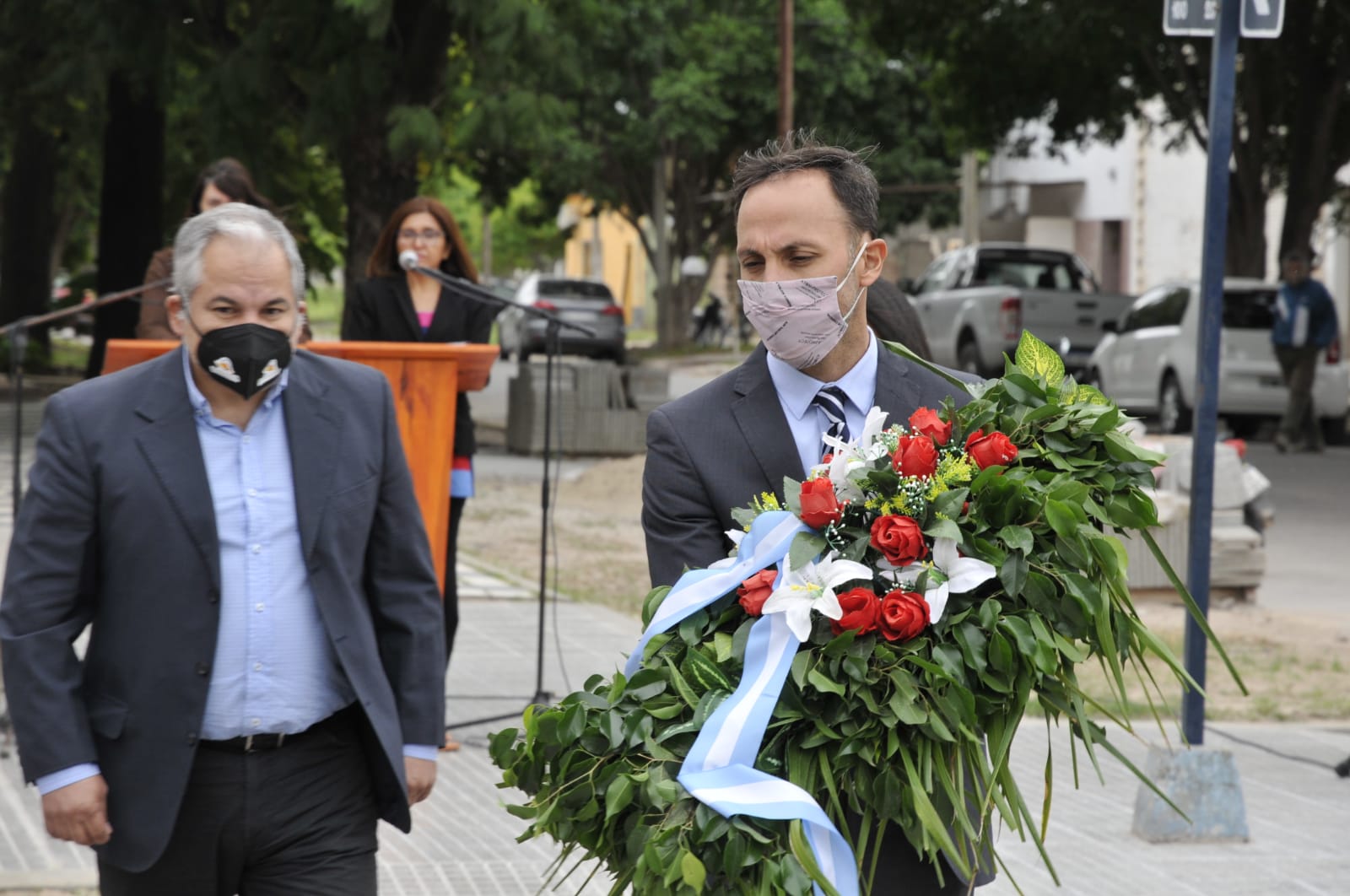 Seguidamente el intendente Dr. víctor Araujo, junto a la Diputada Provincial Patricia Buena; la referente local del movimiento Scout Marisa Geréz y el director de Deportes Nelo Iturre, procedieron a la plantación de un ejemplar arbóreo en la Plaza Central «Bartolomé Mitre» realizó la invocación religiosa pertinente dando paso a la colocación de ofrendas florales como parte del como símbolo del respeto y la permanencia en el tiempo de la memoria por los desaparecidos en la dictadura.