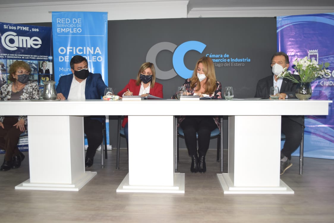 La intendente de la Capital, Ing. Norma Fuentes, junto a la presidente de la Cámara de Comercio e Industria, Ing. Alejandra Rafael, y al titular de la Agencia Territorial del Ministerio de Trabajo de la Nación, Dr. Daniel Escobar Correa, firmaron una carta intención de cooperación para poner en marcha el programa Promover destinado a personas con discapacidad y difundir los alcances del plan de empleo joven Te Sumo.