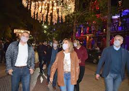 Tras el encendido de las luces, la intendente recorrió el paseo principal y afirmó que iluminación se realizó en base a un concepto integral de recuperación y reciclado que incluyó botellas plásticas.