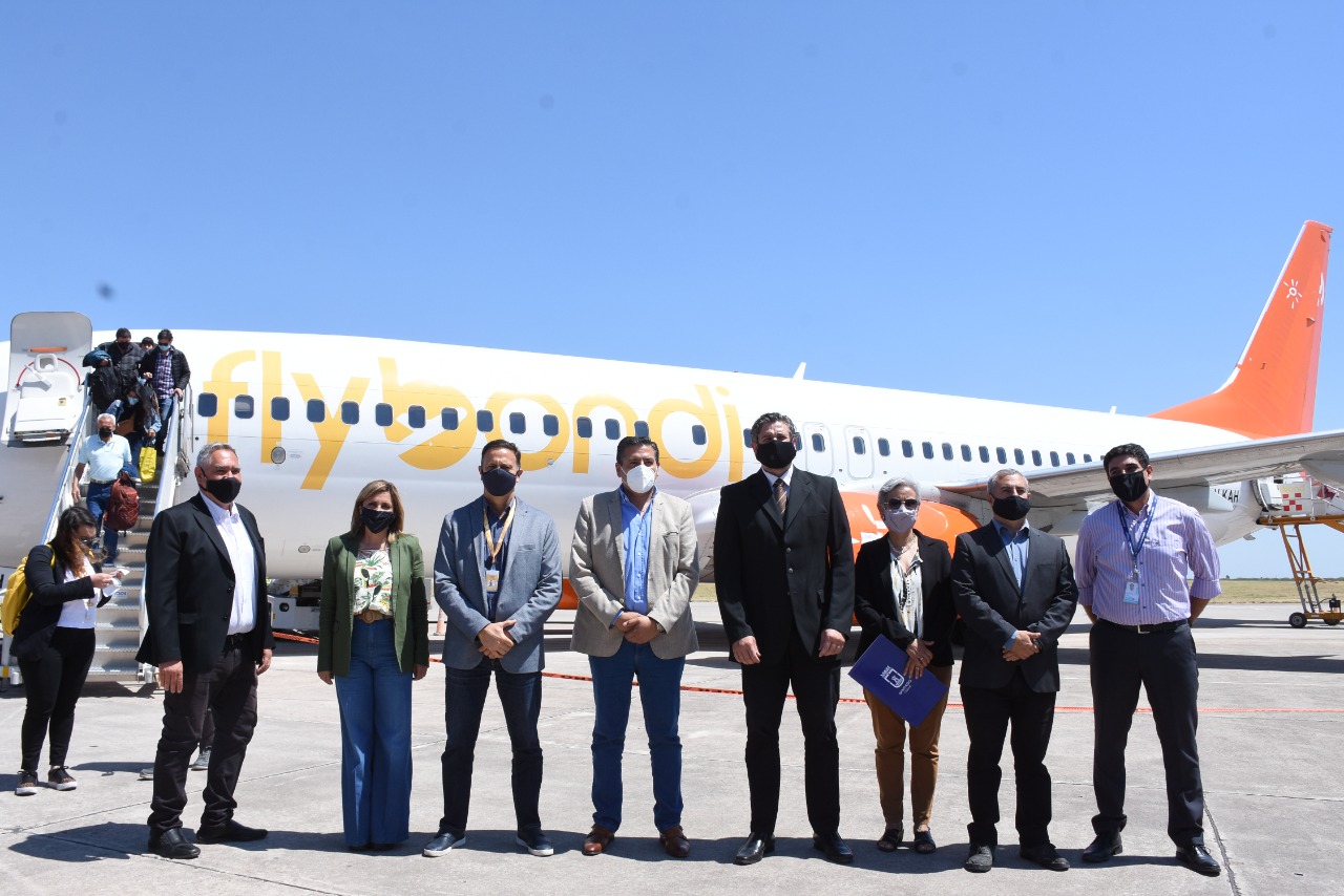 En el Aeropuerto de la ciudad se realizó el anuncio de incrementos de vuelos de la empresa Flybondi para nuestra provincia, con la presencia del director de asuntos corporativos de Flybondi, Esteban Tossutti, el secretario Ejecutivo de INPROTUR, Ricardo Sosa, el subsecretario de Turismo de la provincia, Nelson Bravo y la intendente de la ciudad, Ing. Norma Fuentes.
