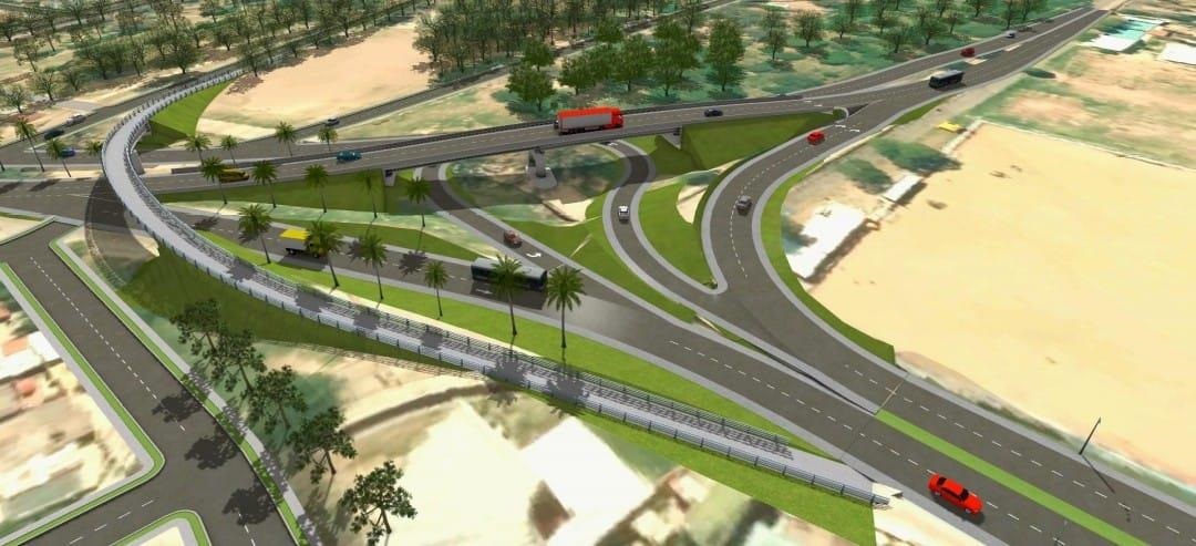 Los trabajos que se ejecutan son demolición, retiro de hormigón, movimiento de suelo con compactación especial para reposición de banquinas y taludes, calzada, construcción de puente vehicular sobre Av. Alsina, construcción de zanja de desagüe, provisión y colocación de columna aérea de señal, entre otros.