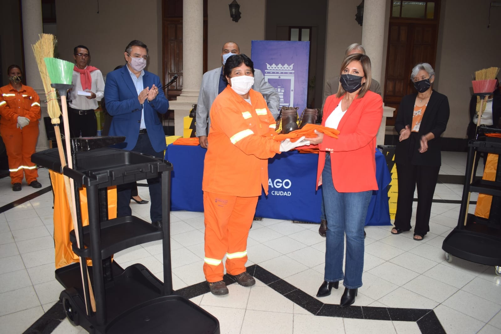 En esta oportunidad, se otorgaron carros multifunción con doble bandeja plástica, base para bolsa, porta bolsa y tapa de seguridad; además de palas, escobas, escobillas y uniformes compuestos por camisa, pantalón y botines.