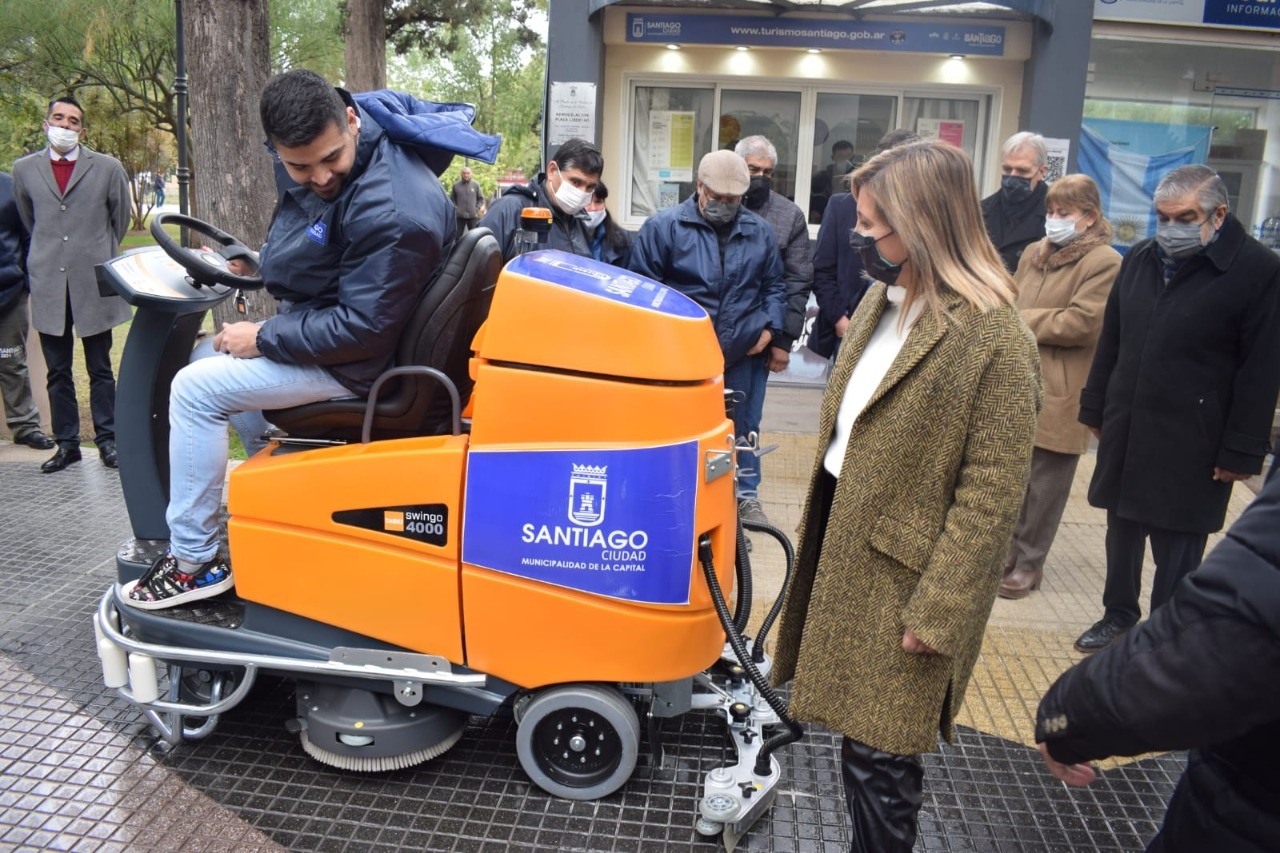 Continuando con la provisión de indumentaria y equipos de trabajo para el personal municipal, la intendente de la Capital, Ing. Norma Fuentes, entregó a la Dirección de Parques y Paseos una novedosa máquina fregadora de pisos para el lavado de veredas y caminerías de espacios verdes de la ciudad, generando un significativo ahorro en las cantidades de agua que se emplean para tal fin.