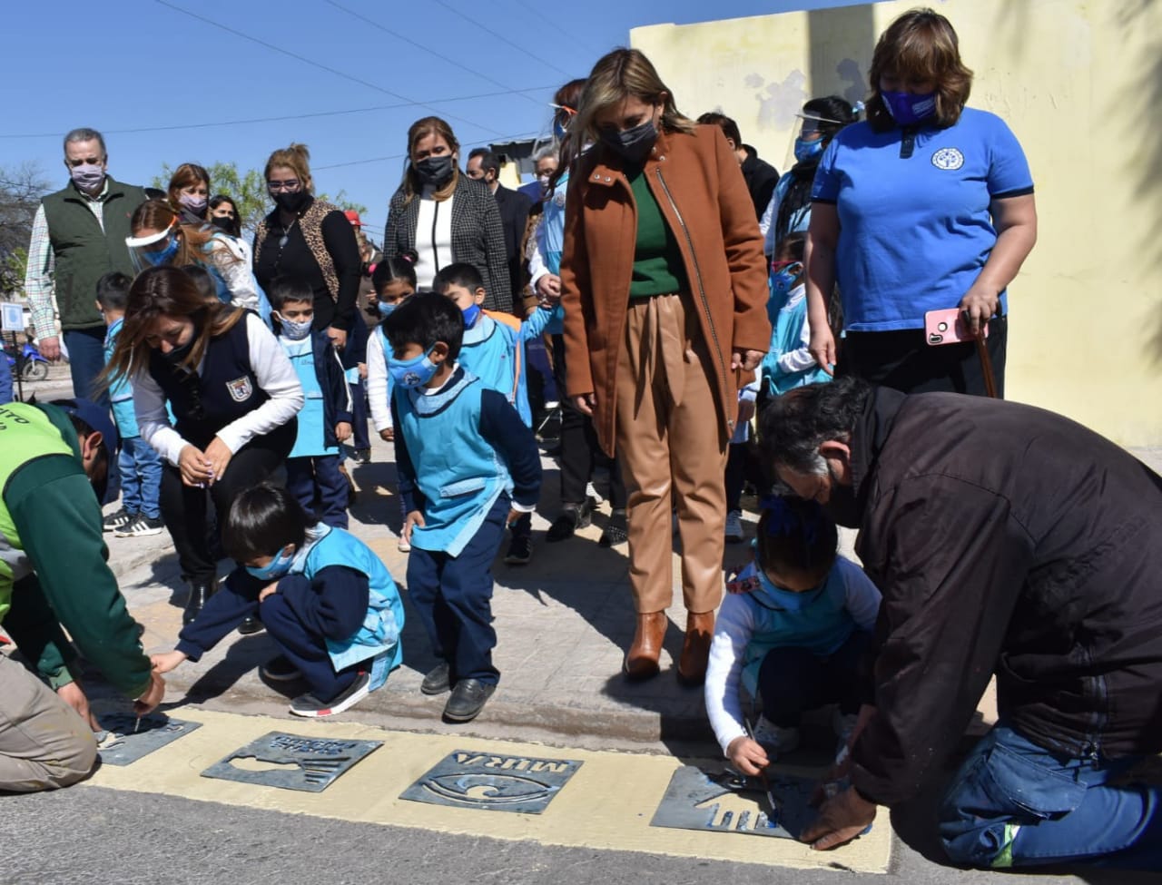En primer lugar, se realizaron nuevos pictogramas en las sendas peatonales ubicadas en la intersección de las calles Benjamín Zavalía y Ramón Cardozo, con la participación de los docentes y alumnos del establecimiento educativo y de los integrantes de la asociación Santiago Azul TEA.