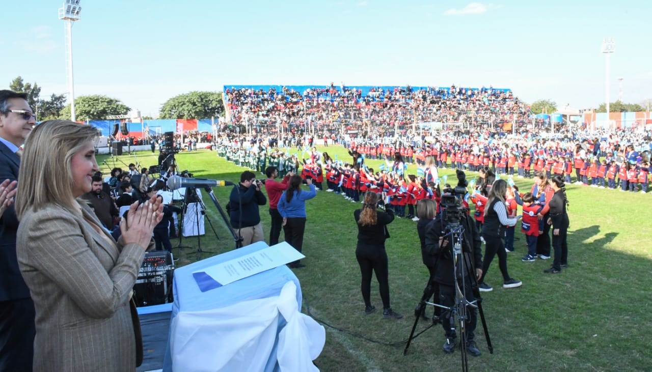La Intendente, Ing. Norma Fuentes, tomó la promesa de cariño de la bandera de la Nación a más 1.400 alumnos de tercer ciclo de los 26 jardines de infantes de la Municipalidad de la Capital, que tuvo lugar en las instalaciones del Club Güemes ante una multitudinaria asistencia de la comunidad educativa.
