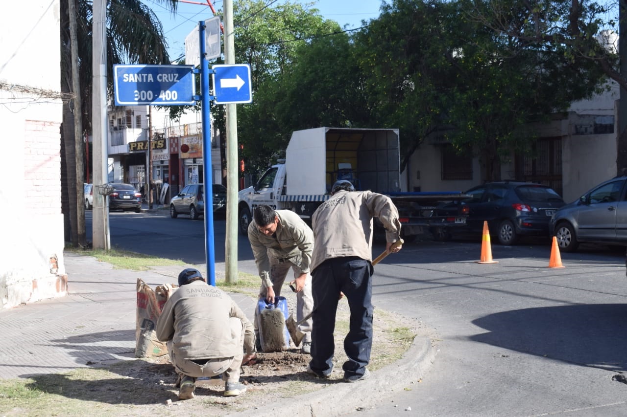 La Dirección de Tránsito de la Municipalidad de la Capital continúa con las tareas de reposición de nomencladores en diversas calles del barrio Alberdi.