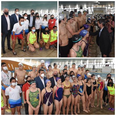 El Ministro de Turismo y Deporte de la Nación, Matías Lammens junto al secretario de Deportes y Recreación, Prof. Carlos Dapello y el secretario Ejecutivo de INPROTUR, Ricardo Sosa visitaron el Natatorio Olímpico “Madre de Ciudades”, para recorrer las modernas y cómodas instalaciones.