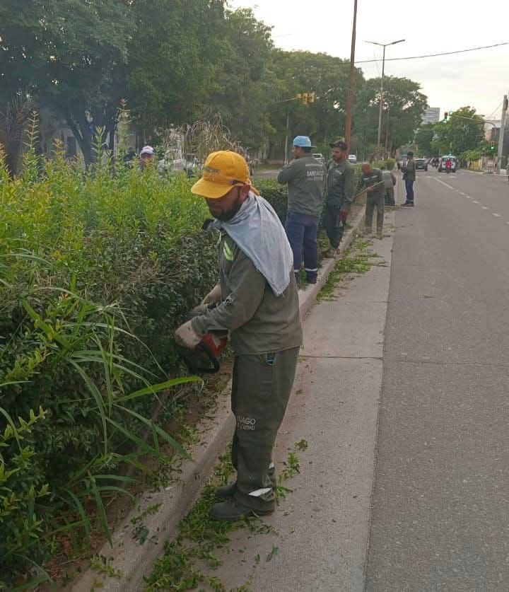 Las tareas de mantenimiento de la vegetación ornamental de la platabanda de la avenida Belgrano se desarrollan de manera periódica, teniendo en cuenta que se trata de uno de los principales corredores viales de la ciudad.