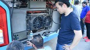 Los técnicos Ehiner Arias de Colombia y Li Kai de China; realizaron el escaneo del paquete de baterías de las unidades; a la vez que Santiago Frachetti; explicó los alcances y el protocolo de mantenimiento de los vehículos; a fin de que
