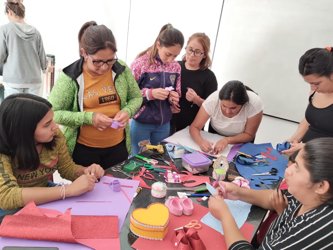 La tallerista Petrona Tevez dio detalles de lo que fue la primera clase, en la que los alumnos hicieron trabajos básicos, diseñados para principiantes, con materiales como goma eva.