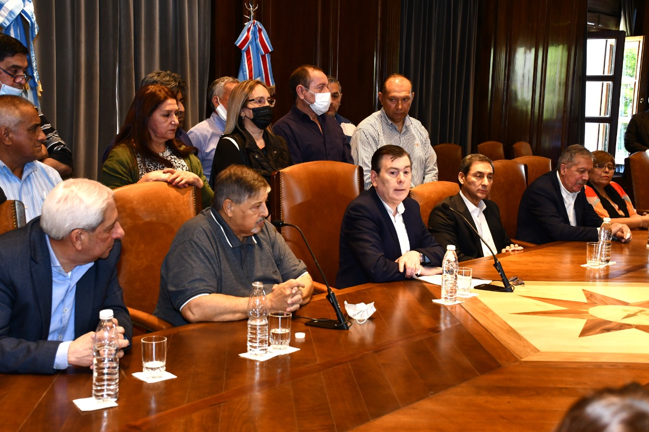 Los anuncios fueron realizados en el Salón de Acuerdos de Casa de Gobierno, donde también estuvieron el vicegobernador Carlos Silva Neder; el jefe de Gabinete, Elías Suárez; la secretaria de Trabajo, Julia Comán, y los senadores José Emilio Neder y Gerardo Montenegro (secretario adjunto de la CGT local). También el secretario general de la CGT José Gómez junto con los representantes de todos los sindicatos que integran la Mesa de Diálogo del Trabajo.