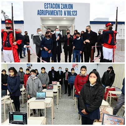 Luego se trasladó a los edificios educativos para realizar los cortes de cintas y los correspondientes recorridos. El primero fue en la sede del Colegio Secundario Agrupamiento N° 86.123, que cuenta con tres aulas, laboratorios, sector administrativo y núcleo sanitario.