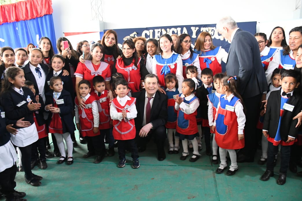 El mandatario llegó acompañado por el Vicegobernador Carlos Silva Neder y los Ministros de Educación, Mariela Nassif; de Obras Públicas, Aldo Hid, y de Desarrollo Social, Ángel Niccolai, y la presidente del Consejo General de Educación, María Elena Herrera