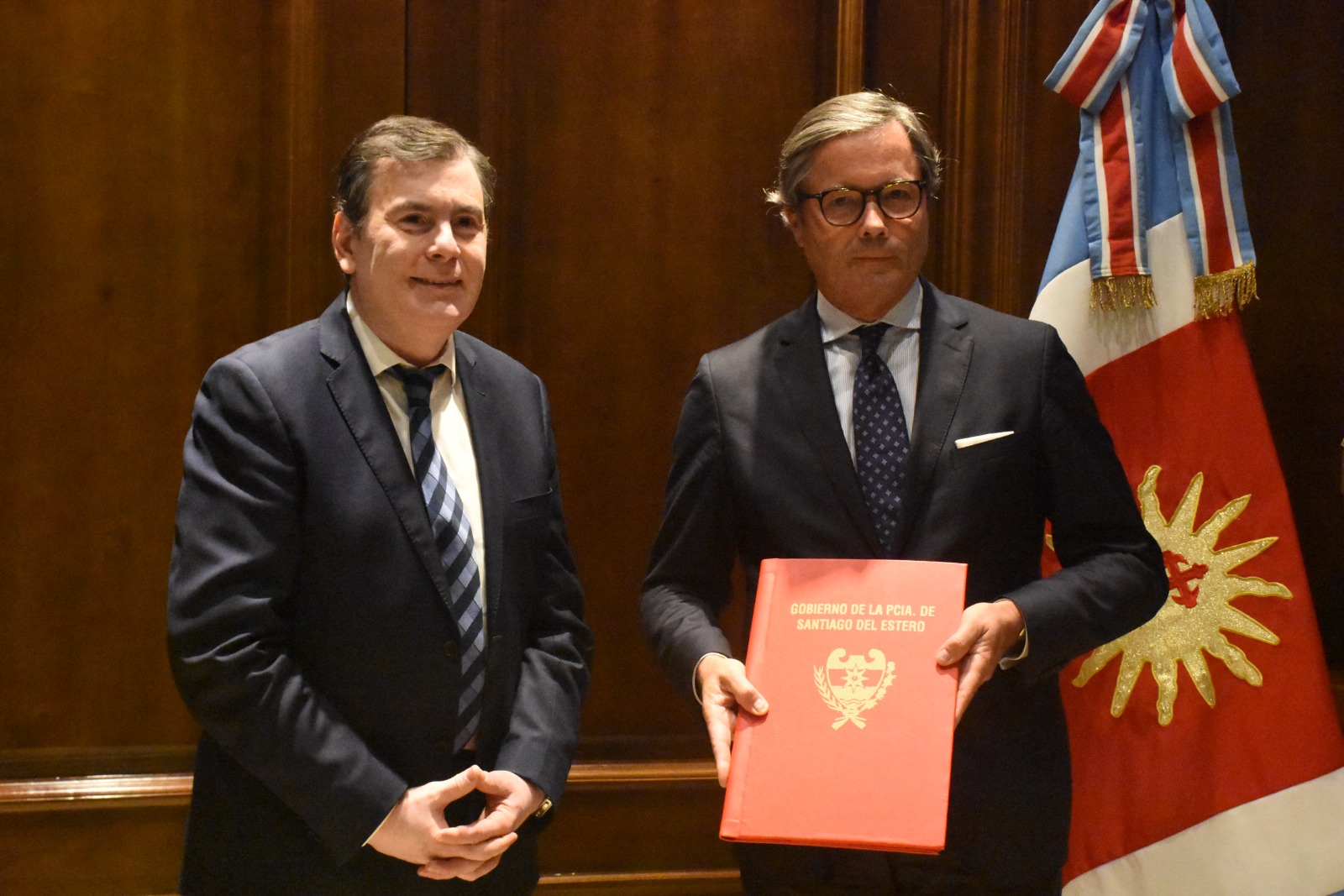 El gobernador Gerardo Zamora recibió este jueves por la tarde en el Salón de Acuerdos de Casa de Gobierno, la visita del embajador de la República Federal de Alemania, Dr. Ulrich Sante, quien llegó acompañado de su esposa, Cristina Sante, y el cónsul honorario de Alemania en la región, Ing. Germán Gottger.