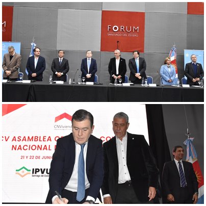 El gobernador Gerardo Zamora, acompañado por el ministro de Desarrollo Territorial y Hábitat de la Nación, Jorge Ferraresi, participó de la apertura de la 95° Asamblea Ordinaria del Consejo Nacional de la Vivienda, realizado este martes en el Fórum.